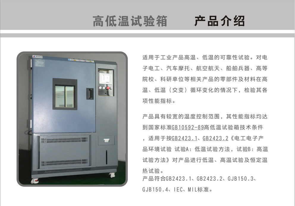 符合標準GB10589-89、GB10592-89、GB10586-89、GB11158-89、GB/T5170.2-96、GB5170.5-96、GB2423.1-89、GB2423.2-89、GB2423.3-89